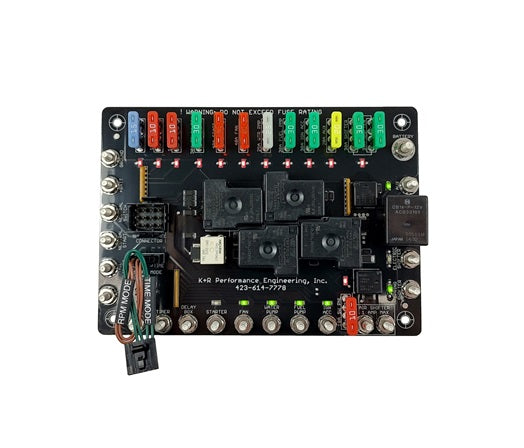 The KRPE-SD-SPD-8-CI is our internal part number for the K&R Performance Engineering super duty wiring kit with carbon Illusion faced switch panel and 8’ switch panel cable. This kit includes a remote mount fuse / relay board with heavy duty stud mount terminal which is controlled by a cable connected switch panel. The switch panel comes with a pre-wired cable that simply plugs into the fuse / relay board. The kit also includes printed wires for the most common race car electrical components, colored wires for standard electrical sub-systems, terminal ends, heat shrink, wire ties and colored laminated poster size wiring diagram.
